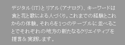 デジタル(IT)をメインとしたブランディングを手がけるなかに、アナログ(リアル)をも重視したユーザー投稿(意見&提言)により「新くしまちづくり」の企画構成を行います。あらゆる世代の市民の皆様とのヒアリングから始まり、マーケティングからコンテンツ制作まで多様なご要望にトータルでサポート致し、スピード感をもって実践へと誘導します。また、プロモーションイベントやサンプリングなどもご相談ください。